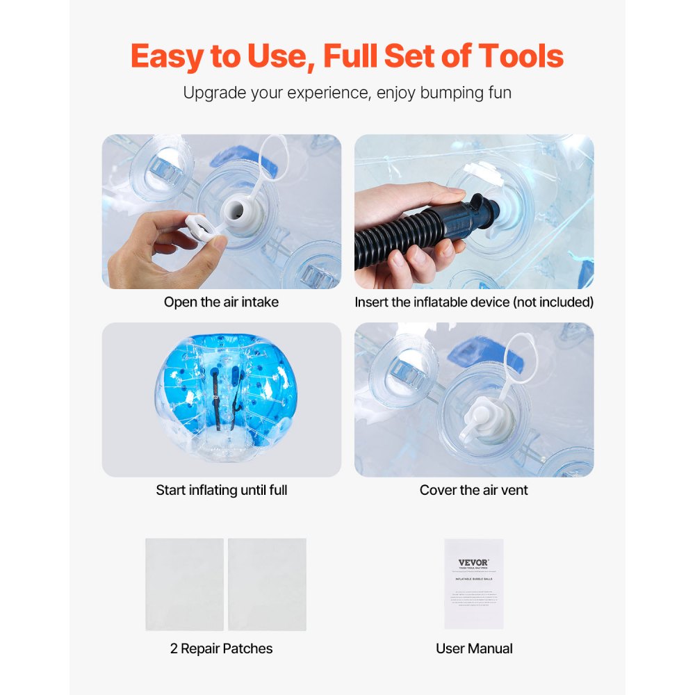 Elastyczna zabawa: kulki bąbelkowe z ludzkim chomikiem VEVOR nadają się do zabawy solo i w grupie. Ciesz się swobodą skakania, skakania i pchania z przyjaciółmi. Idealny do ogrodów, podwórek, placów zabaw, parków i obiektów rekreacyjnych - do zabawy w dowolnym miejscu i czasie.