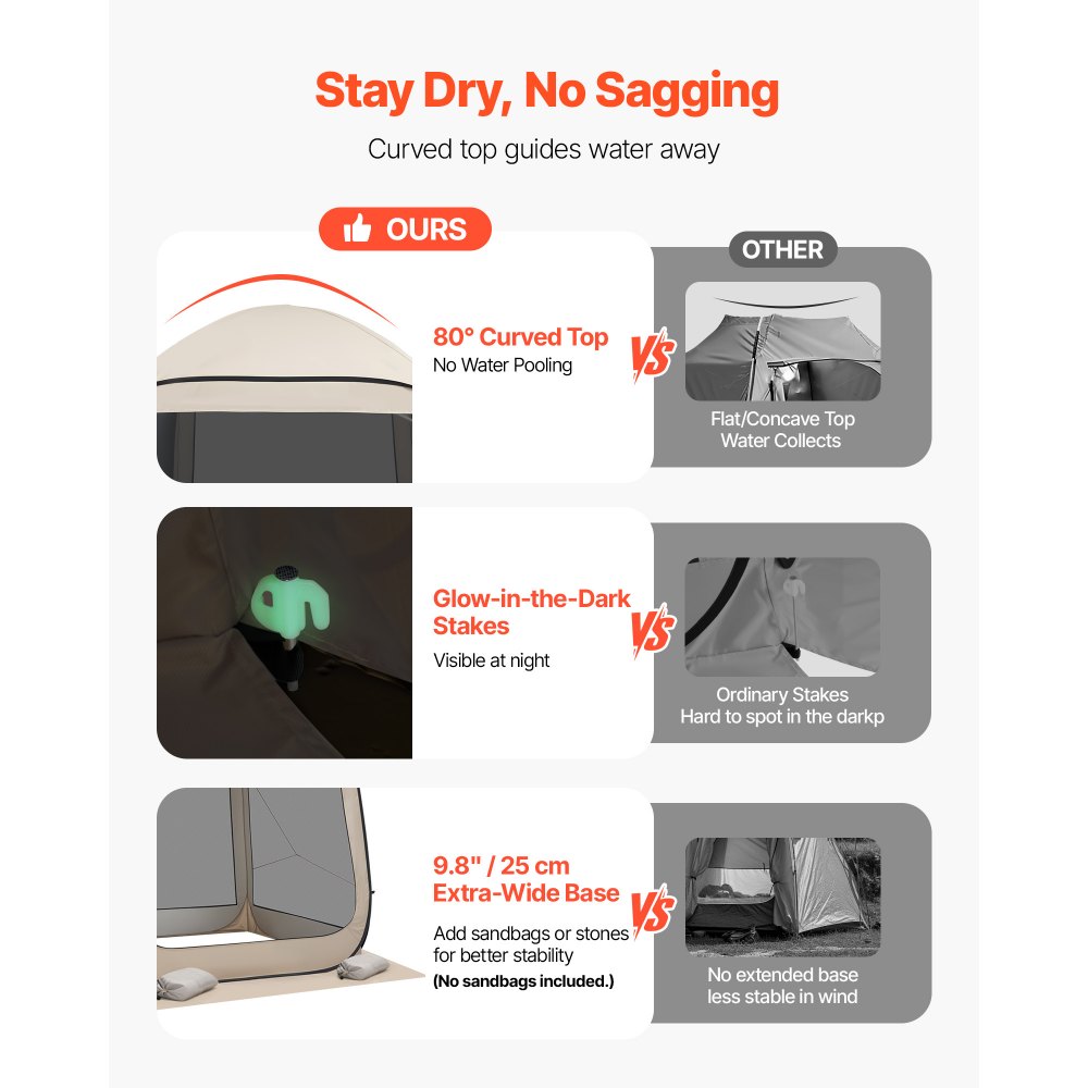 Namiot kempingowy VEVOR, 182,88 x 182,88 x 219,4 cm, namiot imprezowy dla 4-6 osób, rozkładany namiot z torbą transportową, ściankami bocznymi z siatki i kołkami, do ogrodu, na patio i do aktywności na świeżym powietrzu, beżowy
