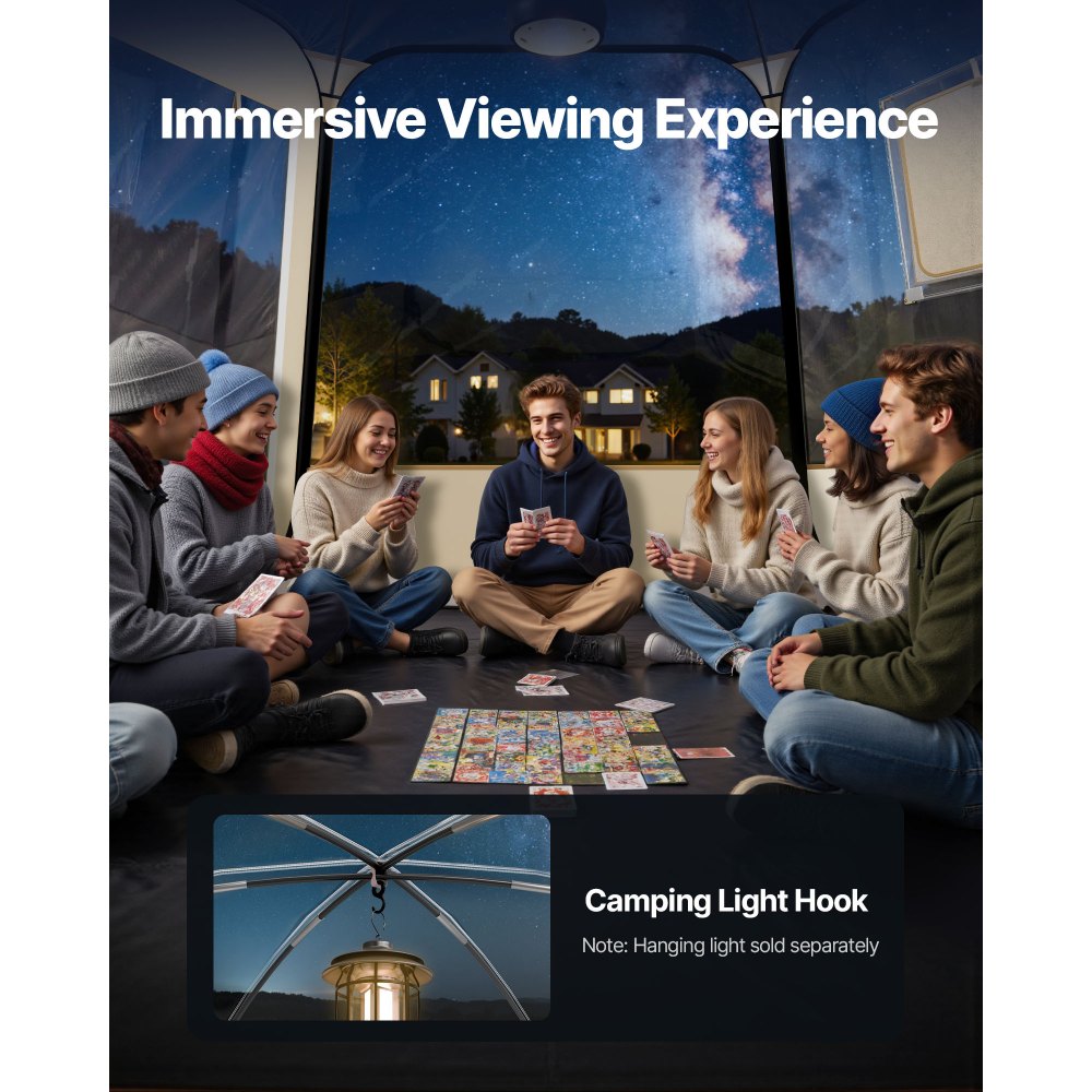 Namiot kempingowy VEVOR z funkcją rozkładania, 366 x 345 x 220 cm, przezroczysty, namiot ogrodowy igloo z oknami, namiot sportowy, panoramiczny widok 540°, dla 10–12 osób, taras, podwórko