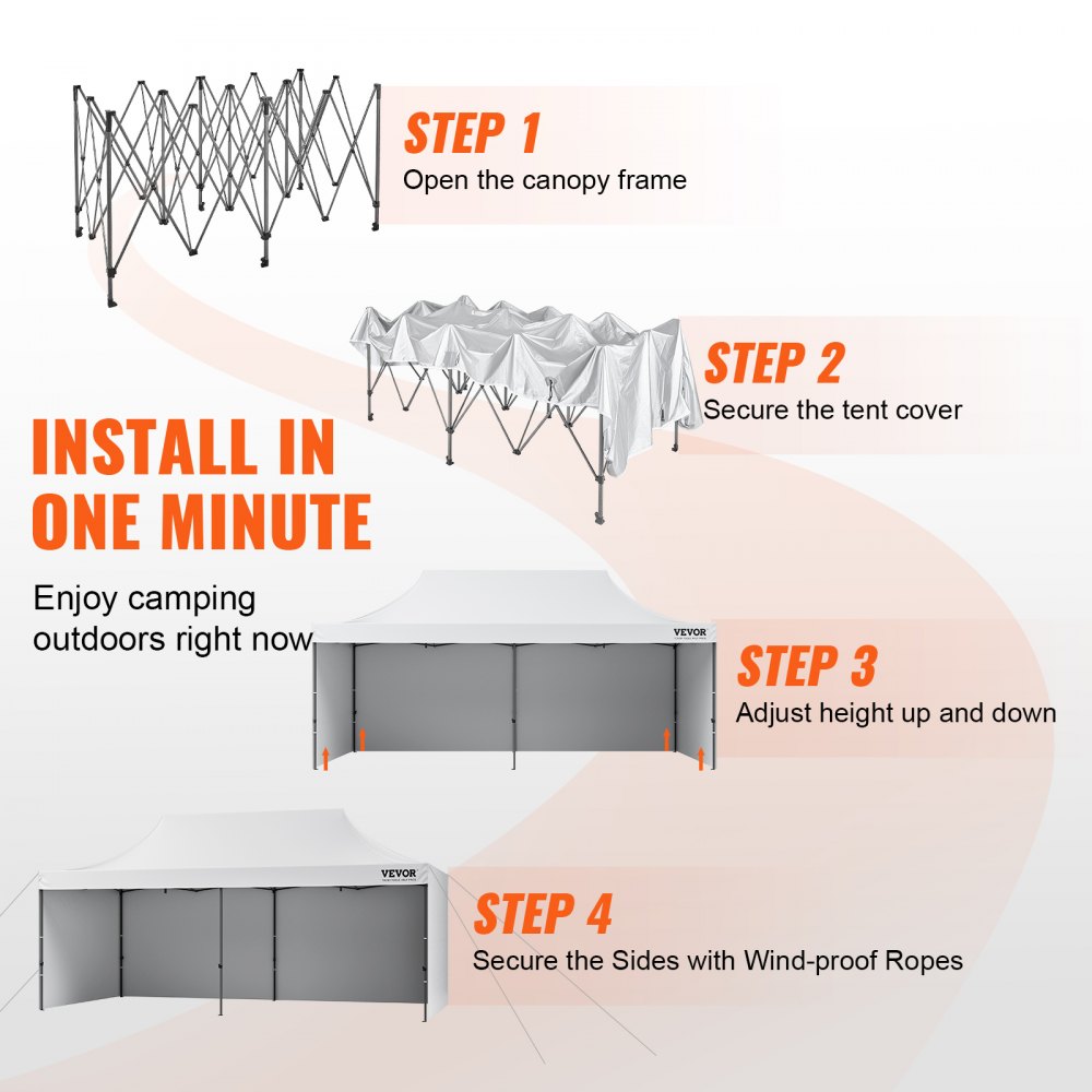 Szybki i łatwy montaż: Montaż tego zadaszenia zewnętrznego jest dziecinnie prosty: po prostu wyjmij zmontowaną ramę z torby, otwórz ją, załóż daszek i wysuń nogi. Służy nie tylko jako namiot kempingowy lub zadaszenie patio, ale jest również idealny do zajęć na świeżym powietrzu, takich jak przyjęcia w ogrodzie, pikniki, parkowanie samochodu, ustawianie straganu i grillowanie.