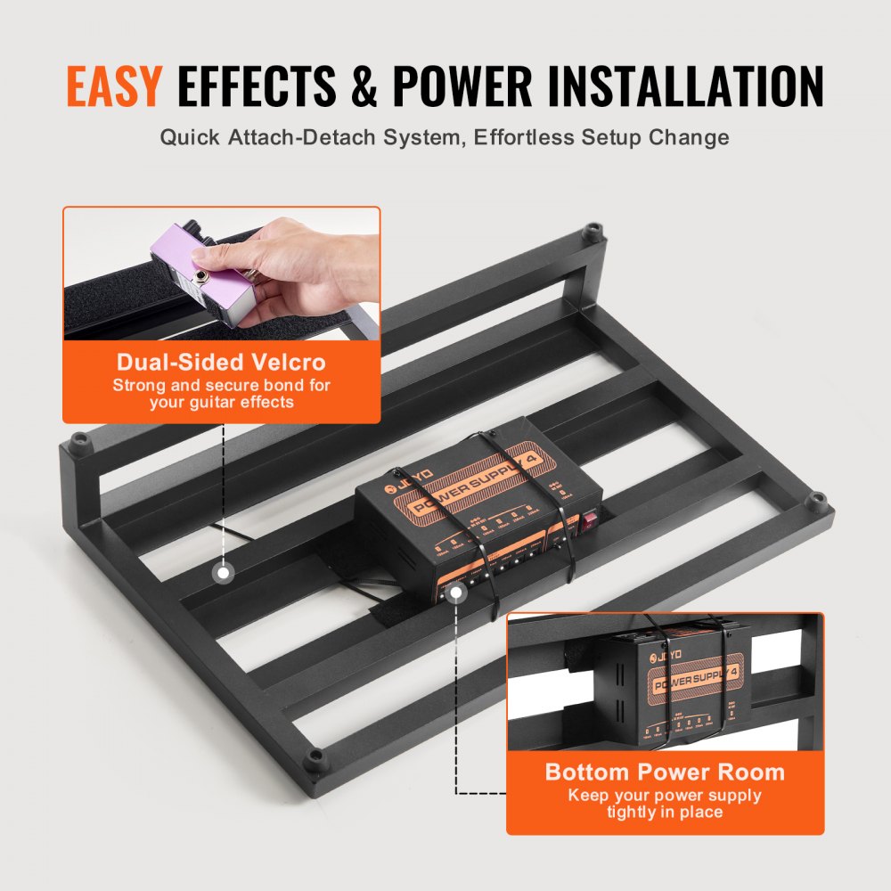 Pomieści 10-12 pedałów gitarowych: Nasz pedalboard o wymiarach 20 x 11 cali / 508 x 280 mm pomieści 10-12 pedałów gitarowych na górze i posiada dedykowany zasilacz pod spodem. Zaprojektowany z myślą o potrzebach tworzenia i występów muzycznych, waży zaledwie 2,2 funta / 1,0 kg, co ułatwia transport. Poczuj wygodę lekkiego, a jednocześnie przestronnego pedalboardu podczas wszystkich swoich muzycznych przedsięwzięć.