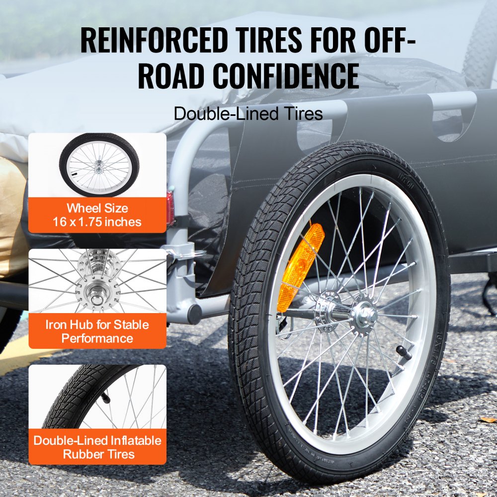 Przyczepka rowerowa VEVOR, ładowność 45 kg, przyczepka transportowa, składana i chowana, szybkozłączka z uniwersalnym sprzęgiem, koła 41 cm, bezpieczne odblaski, pasuje do kół rowerowych o średnicy 558,8–711,2 mm