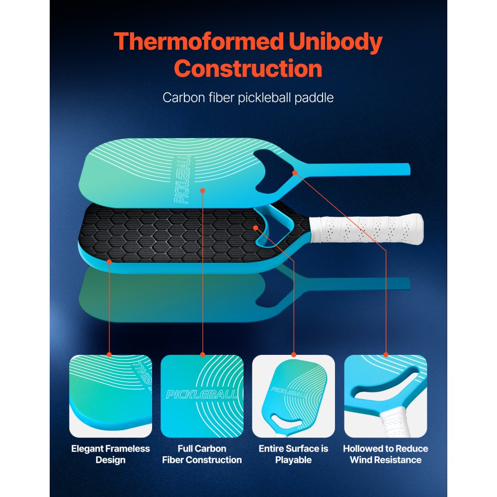 Rakietka do pickleballa VEVOR z gardzielą Aero-Throat, powierzchnią z włókna węglowego T700 i rdzeniem o strukturze plastra miodu, rakietka do pickleballa o zwiększonej mocy, kontroli i rotacji, rakietka do pickleballa dla dorosłych, niebiesko-zielona - Sport i rekreacja