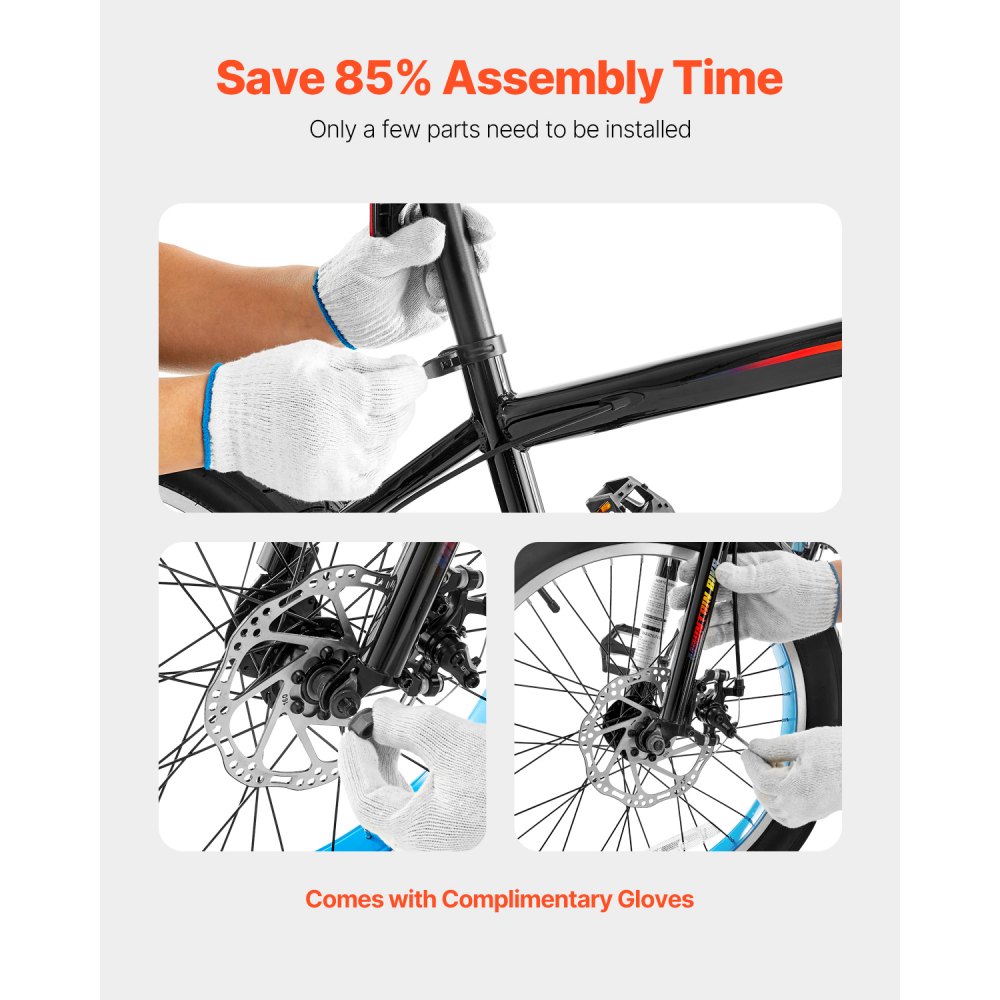 Rower górski VEVOR MTB (50,8 cm) z 7 biegami, wygodnym siodełkiem, podwójnymi hamulcami tarczowymi, ramą ze stali węglowej, rower sportowy z grubymi oponami do jazdy po szlakach i śniegu - Sport i rekreacja | Galaxy Sklep
