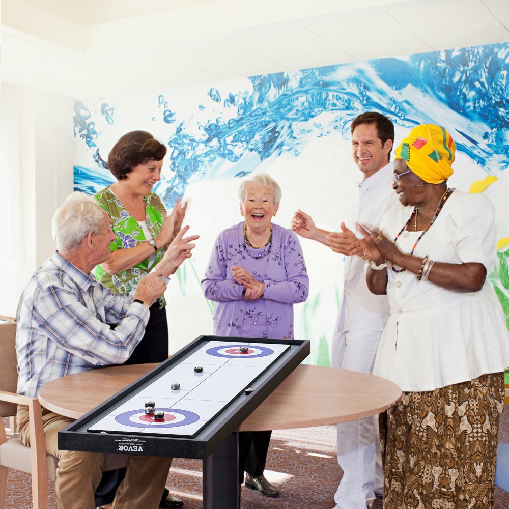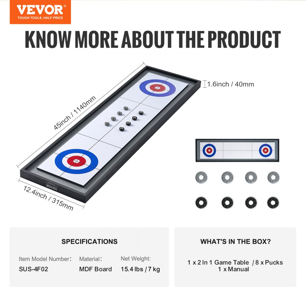 Dwustronna plansza do gry: Ciesz się podwójną zabawą z rodziną, grając w shuffleboard z jednej strony i curling z drugiej.