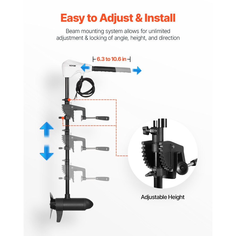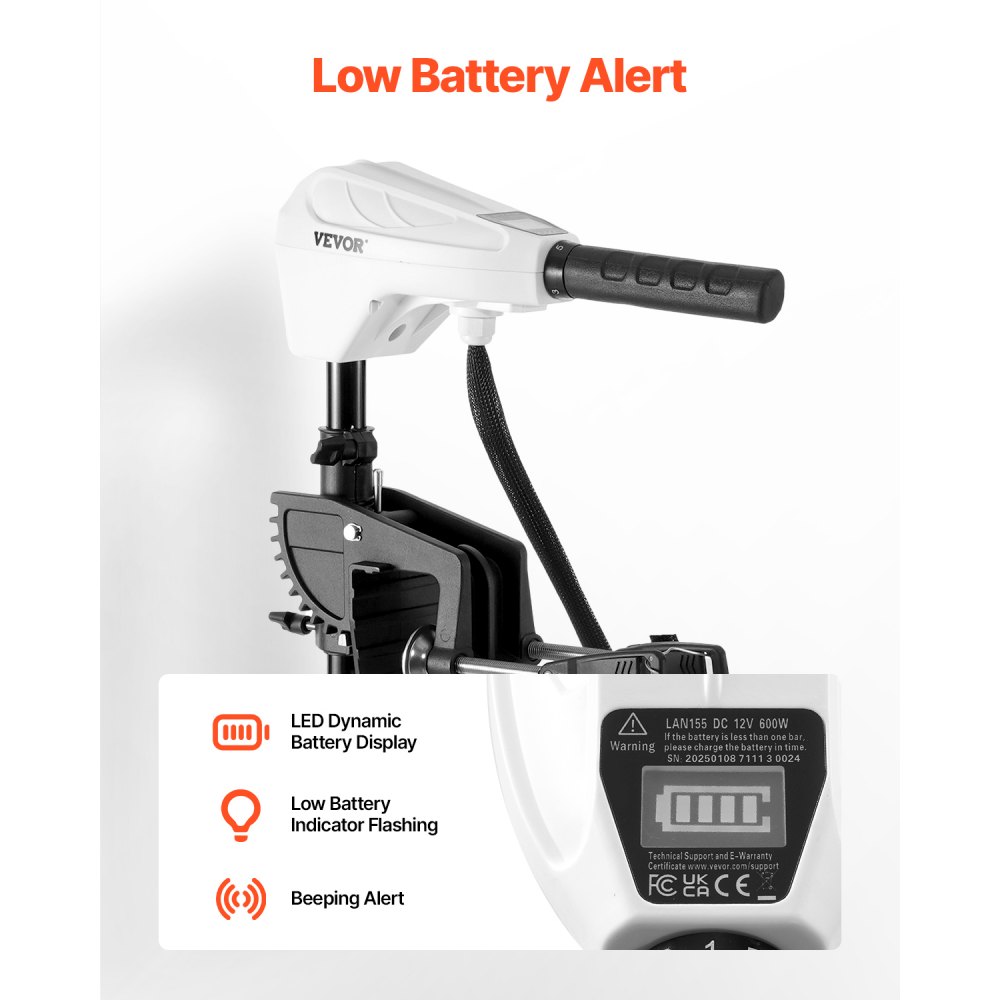 Silnik elektryczny zaburtowy VEVOR, mocowany na pawęży, 12 V, siła ciągu 25 kg, 8-biegowy silnik zaburtowy ze wskaźnikiem poziomu naładowania akumulatora, do kajaków, łodzi wędkarskich słodkowodnych i morskich, wał 76 cm - Sport i rekreacja | Galaxy Sklep