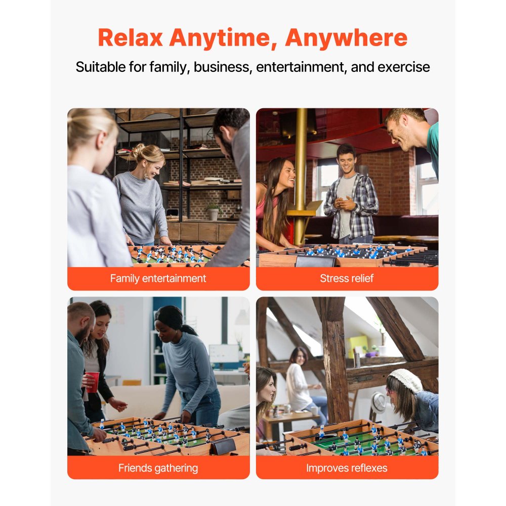 Możliwość złożenia w celu przechowywania: Stół do gry w piłkarzyki jest niezawodny i ma składaną konstrukcję, co pozwala na maksymalne wykorzystanie przestrzeni i sprawia, że nadaje się do użytku w małych pomieszczeniach.