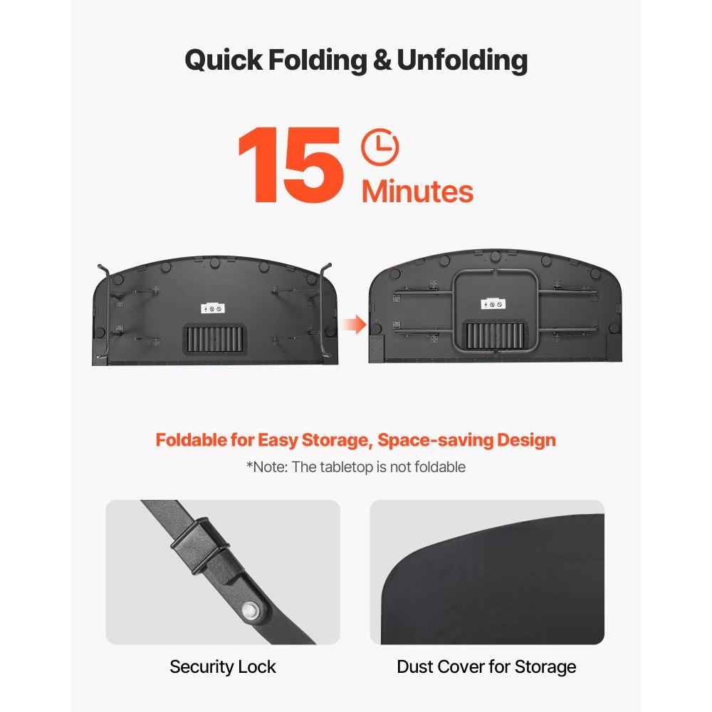 Łatwy montaż: Składana konstrukcja z blokadą bezpieczeństwa umożliwia szybki montaż i demontaż stołu do gier kasynowych. Blokada zapewnia stabilność po złożeniu. Wystarczy schować go w kącie i utrzymać w czystości dzięki dołączonej osłonie przeciwkurzowej.