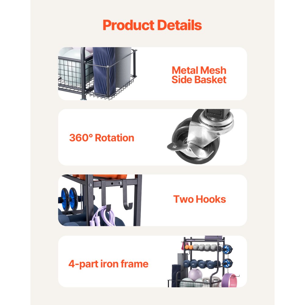 Stojak do przechowywania mat do jogi do ćwiczeń w domu, stojak do podnoszenia ciężarów na matę do jogi z kółkami i hakami, stojak do podnoszenia ciężarów na hantle do domowego sprzętu fitness - Sport i rekreacja | Galaxy Sklep