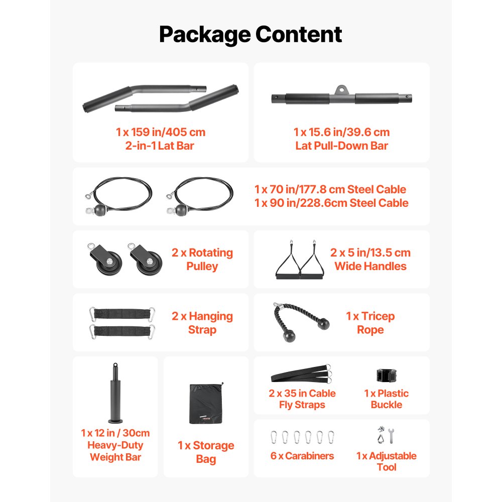 Wszechstronny towarzysz fitnessu: Ten system linowy do siłowni zawiera 2 obrotowe bloczki, 6 karabińczyków i dwa zestawy akcesoriów, co daje więcej możliwości treningowych. Drążek 2 w 1 o długości 405 cm i linka o różnych długościach umożliwiają wykonywanie rozpiętek, ściągania drążka wyciągu górnego, ćwiczeń wiosłowych i ponad 15 innych ćwiczeń na poziomie profesjonalnym.
