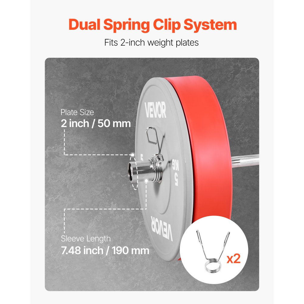 Kompatybilny ze standardowymi obciążeniami o średnicy 50 mm: Sztanga posiada uniwersalną tuleję o średnicy 50 mm (2 cale), dzięki czemu jest w pełni kompatybilna ze standardowymi obciążeniami. Posiada wytrzymały i łatwy w montażu system blokowania kołnierzowego, który bezpiecznie blokuje obciążenia i zapobiega ich przesuwaniu się lub luzowaniu podczas treningu. To znacznie poprawia bezpieczeństwo i stabilność.