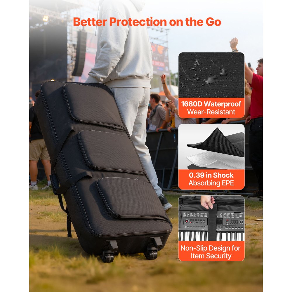 Torba na klawiaturę VEVOR, torba na klawiaturę 88 klawiszy, 1100 x 440 x 180 mm, torba na pianino elektryczne z regulowanymi paskami na ramię, uchwytami do przenoszenia i kółkami, 1680D, wodoodporna i wyściełana do klawiatury - Sport i rekreacja | Galaxy Sklep