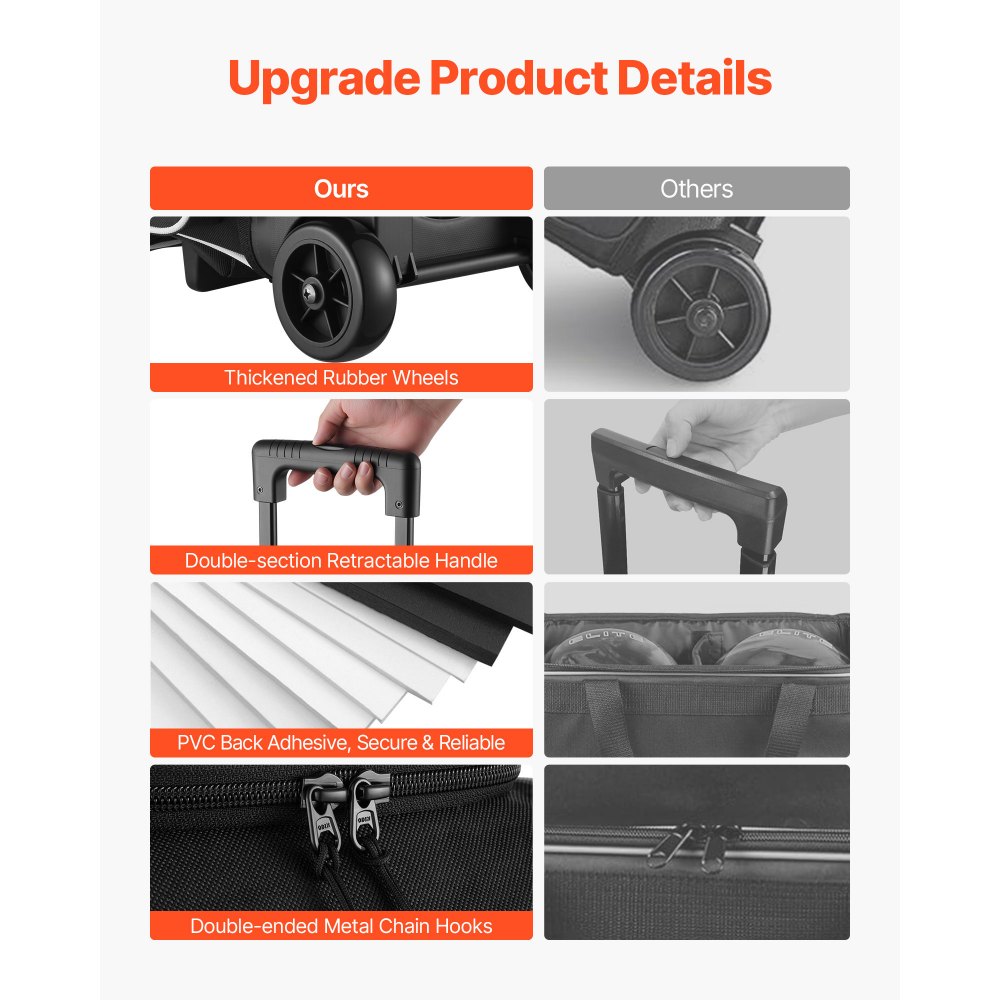 Torba na kule do kręgli VEVOR na 2 kule z podwójnymi kółkami i oddzielną przegrodą na buty (do rozmiaru US 16) oraz dużą kieszenią na akcesoria, wysuwaną rączką, rozciąga się do 105 cm, kolor czarno-biały