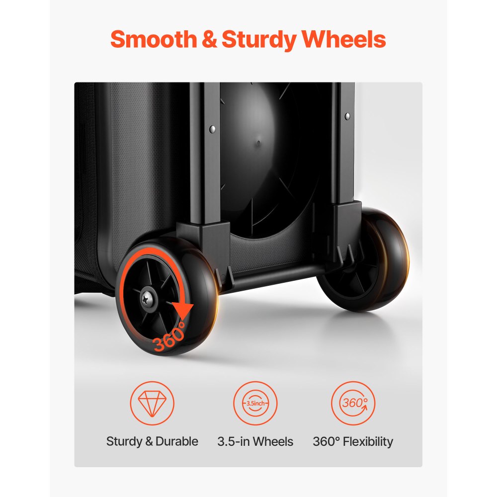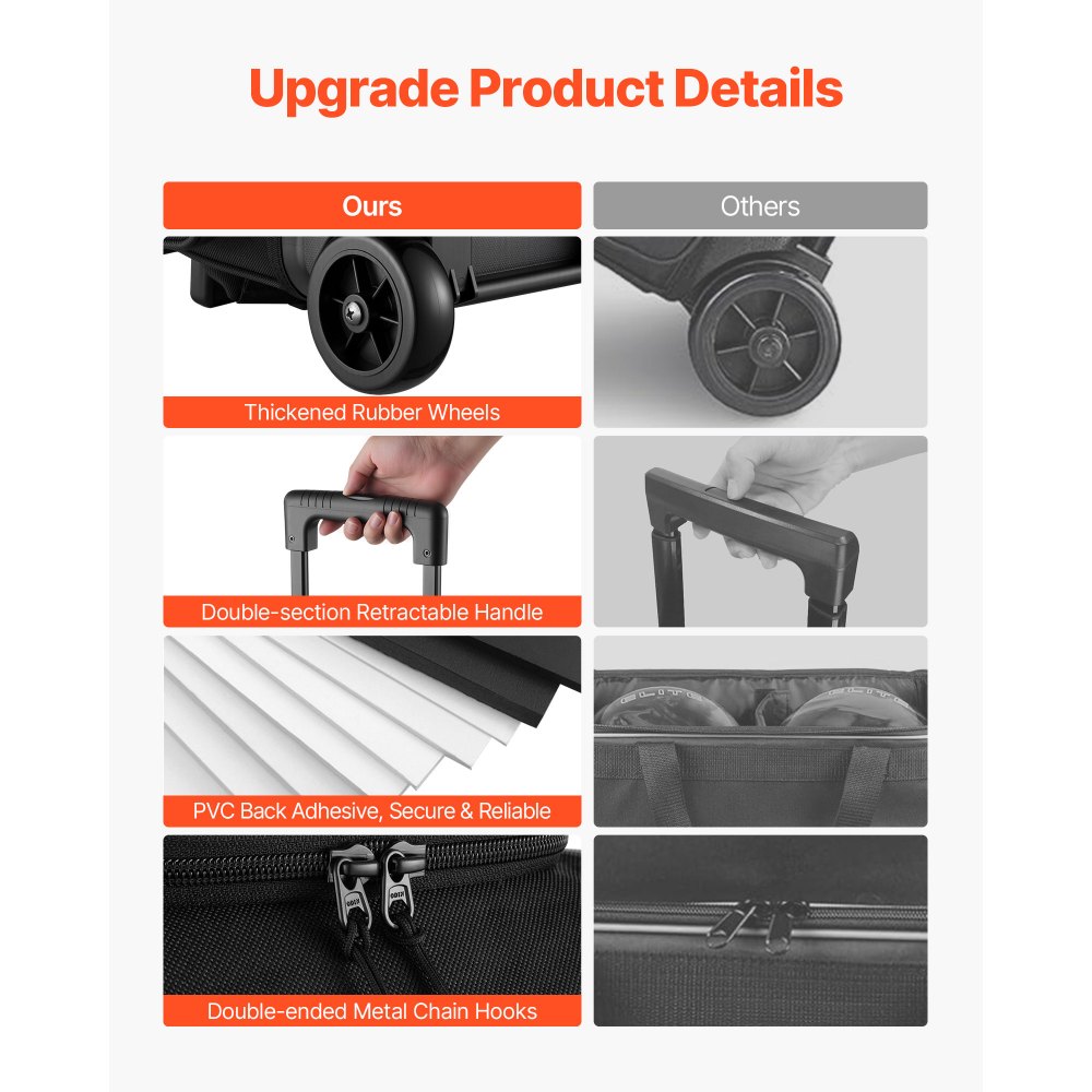 Torba na kule do kręgli VEVOR na 2 kule z podwójnymi kółkami, oddzielną przegrodą na buty (do rozmiaru US 16) i dużą kieszenią na akcesoria, wysuwana rączka, długość do 105 cm, kolor czarny - Sport i rekreacja