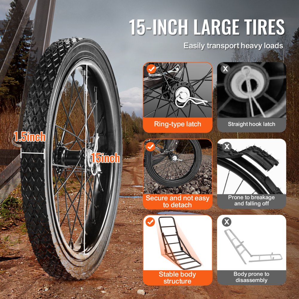 Odpowiedni do różnych rodzajów terenu: Dzięki łatwej manewrowości i solidnej konstrukcji, ten wózek użytkowy nadaje się do transportu trofeów myśliwskich, sprzętu, drewna opałowego, sprzętu kempingowego i wielu innych rzeczy. Poradzi sobie z różnymi rodzajami terenu, takimi jak wysokie krzewy, błotniste drogi i górskie szlaki, co czyni go wszechstronnym środkiem transportu zarówno w dziczy, jak i w domu.