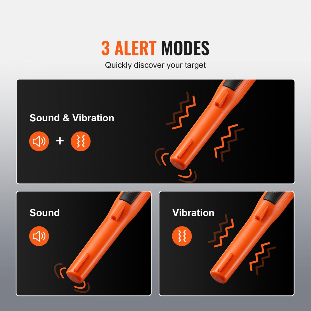 3 tryby alarmu: Ten wykrywacz metali oferuje tryby alarmu dźwiękowego, wibracyjnego oraz dźwiękowo-wibracyjnego, dzięki czemu dopasujesz odpowiedni tryb do każdej sytuacji. Ten ręczny wykrywacz metali pozwala wybrać preferowany tryb, zapewniając spersonalizowane doznania detekcji, jakich nie znajdziesz nigdzie indziej.