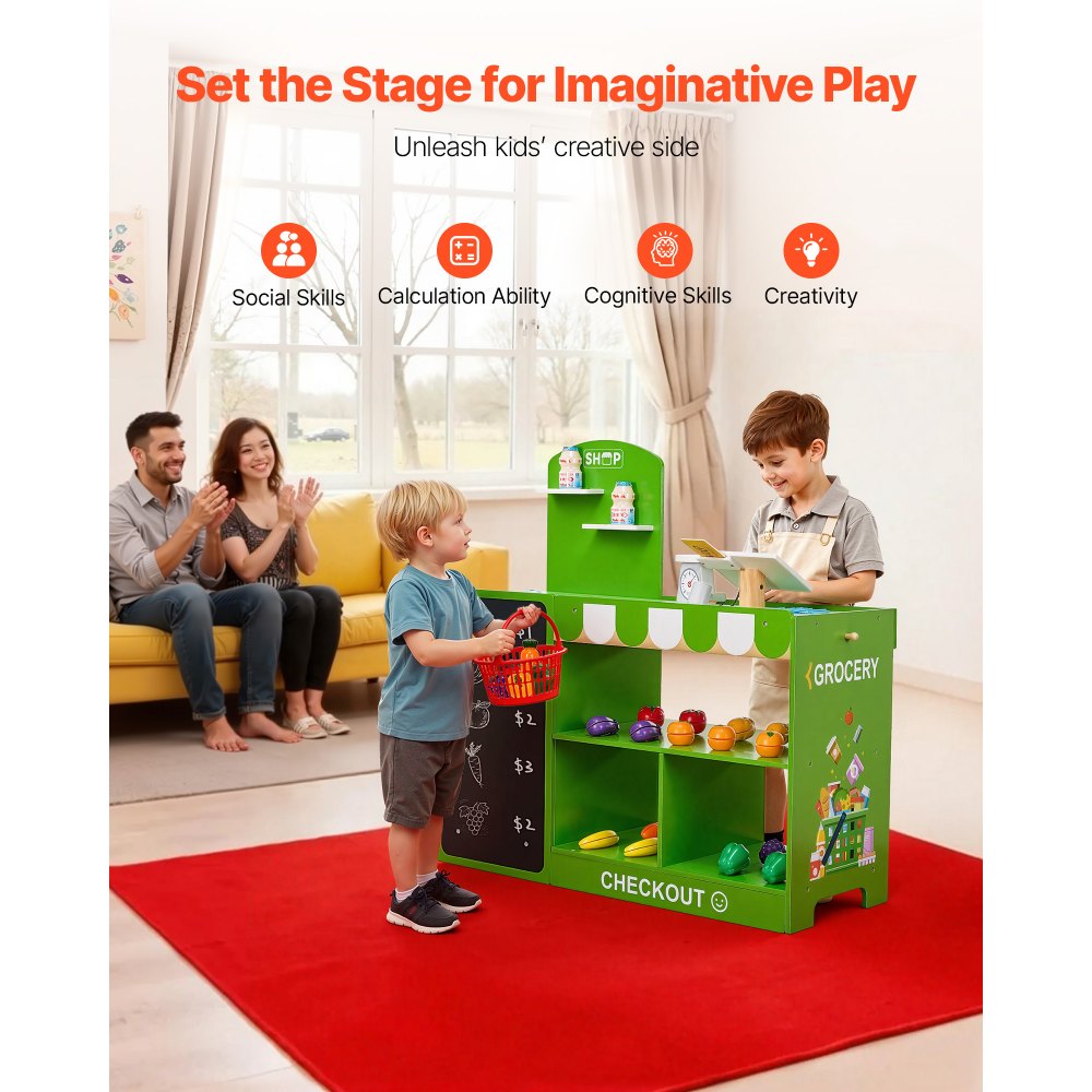 Zabawa w odgrywanie ról: Ten realistyczny zestaw do zabawy w sklep spożywczy pozwala dzieciom zanurzyć się w świecie wyobraźni. Mogą wcielić się w właściciela sklepu, klienta lub magazyniera i świetnie się bawić w każdej roli.
