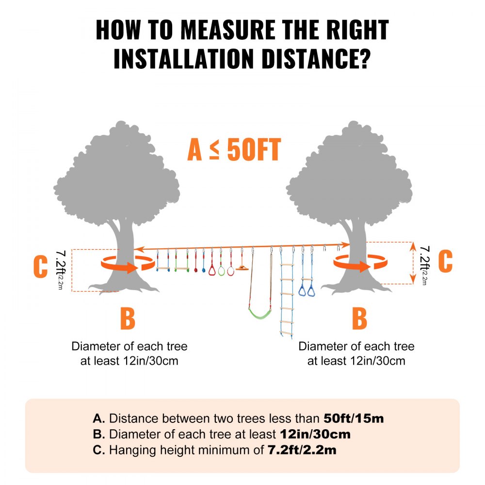 Zestaw przeszkód Ninja Slackline VEVOR, 15,24 m, nośność 226,8 kg, tor przeszkód Ninja, sprzęt do zabawy na świeżym powietrzu, zestaw zabawek do ćwiczeń na podwórku z 10 przeszkodami - Sport i rekreacja | Galaxy Sklep