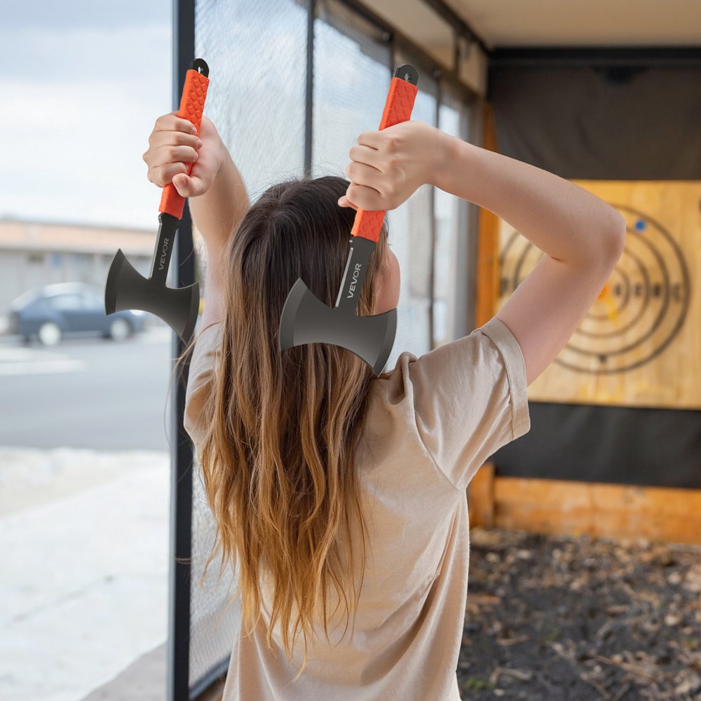 Zestaw siekier i tomahawków VEVOR, 3 części, 302,3 mm, toporek do rzucania z podwójnym ostrzem, głowicą ze stali nierdzewnej, antypoślizgową rękojeścią z gumy TPR i czarną nylonową osłoną, do rekreacyjnego uprawiania sportów kempingowych. - Sport i rekreacja