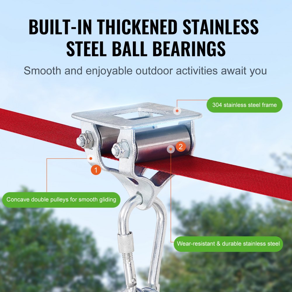 Zestaw tyrolki VEVOR dla dzieci i dorosłych, 20-metrowe zestawy tyrolek o udźwigu do 150 kg, tyrolki na podwórku, rozrywka na placu zabaw z tyrolką, nylonowe szelki bezpieczeństwa i zestaw akcesoriów