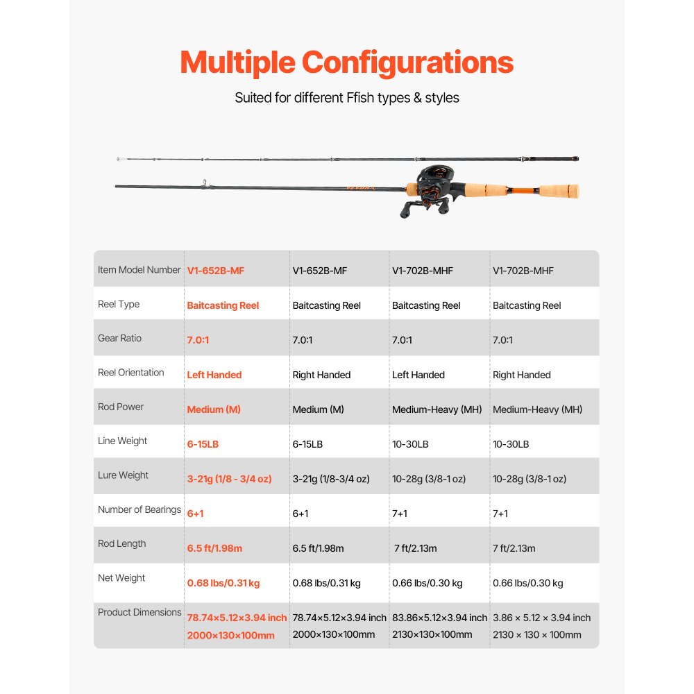 Zestaw wędki i kołowrotka VEVOR (baitcasting), wędka z włókna węglowego 2 m (IM7), zestaw wędki do połowu basów z 6+1 łożyskami kulkowymi i przełożeniem 7,0:1 oraz korkową rękojeścią, zestaw dla leworęcznych - Sport i rekreacja | Galaxy Sklep