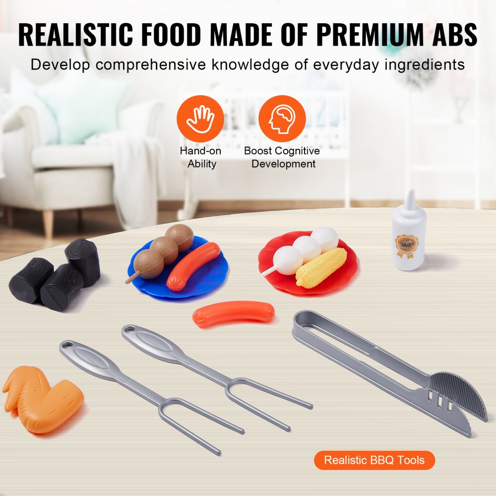 Zestaw zabawek do grillowania VEVOR dla dzieci z dźwiękami dymu i światłami, zabawkowe jedzenie i akcesoria kuchenne, interaktywny zestaw do grillowania i gotowania na kempingu dla maluchów, prezent urodzinowy dla dziewczynek i chłopców w wieku 2-6 lat - Sport i rekreacja | Galaxy Sklep