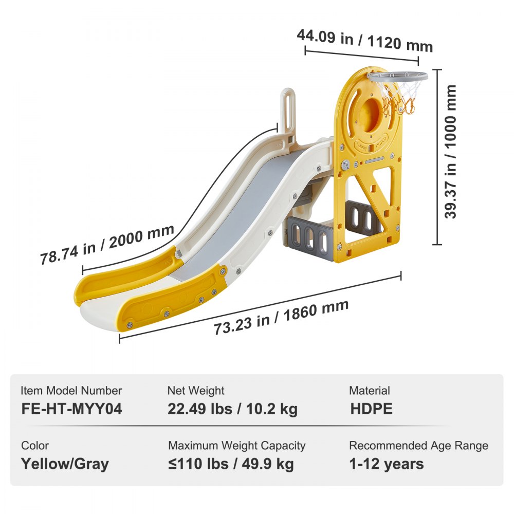 Zjeżdżalnia dla dzieci Zjeżdżalnia z koszem do koszykówki Zjeżdżalnia dla dzieci Zjeżdżalnia ogrodowa HDPE Maks. 50 kg Zjeżdżalnia dla maluchów w wieku 1-12 lat Zjeżdżalnia dla niemowląt Zjeżdżalnia wewnętrzna i zewnętrzna z wyjściem na zjeżdżalnię 186 x 112 x 100 cm