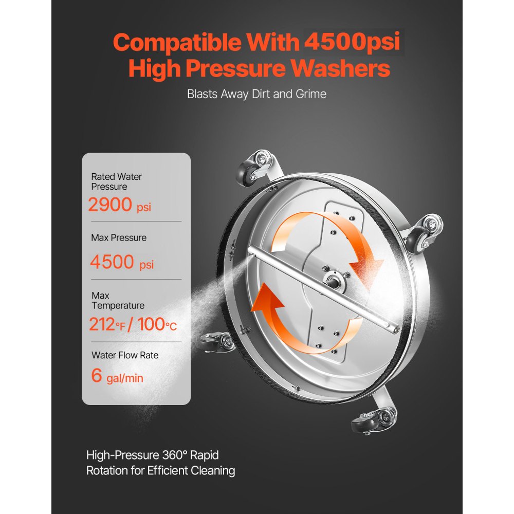 Myjka ciśnieniowa VEVOR 535 mm, myjka powierzchniowa ze stali nierdzewnej, maks. ciśnienie 310 barów, złącze 0,95 cm, podwójna rączka, 2 dysze, spryskiwacz do betonowych tarasów - Sprzęt czyszczący | Galaxy Sklep