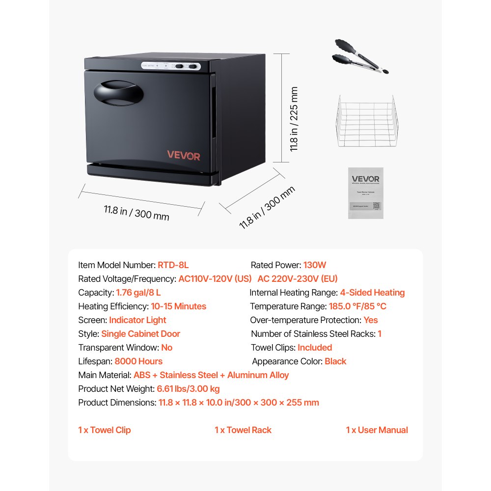 Podgrzewacz ręczników VEVOR, pojemność 8 l na 12 ręczników, z klipsem i stalową ramą, podgrzewacz ręczników do spa, salonu fryzjerskiego, manicure, masażu, funkcja podgrzewania parą i lampka czyszcząca, czarny - Sprzęt czyszczący | Galaxy Sklep