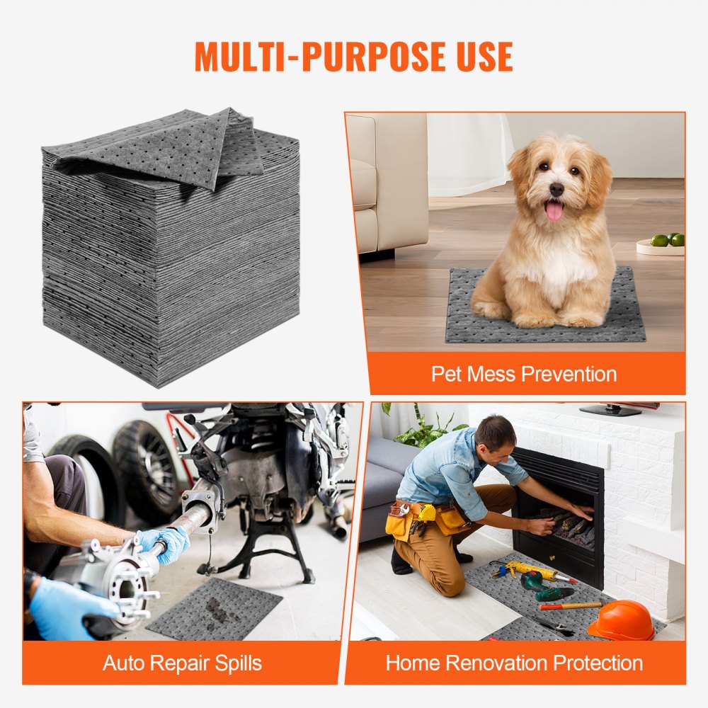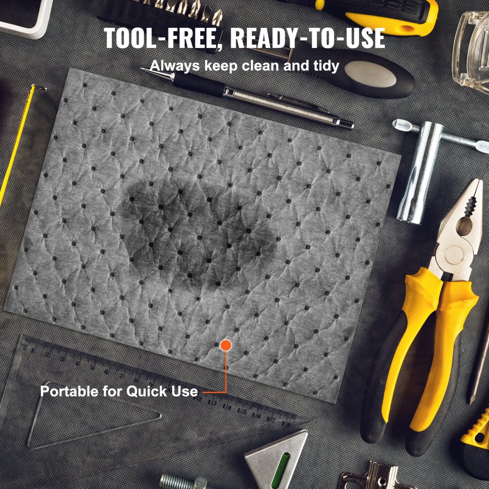 Wkłady chłonne VEVOR, mata chłonna w dozowniku, opakowanie 100 sztuk, 330 x 250 x 3,5 mm, wkłady chłonne z polipropylenu do wody, szare, pojemność 12 galonów