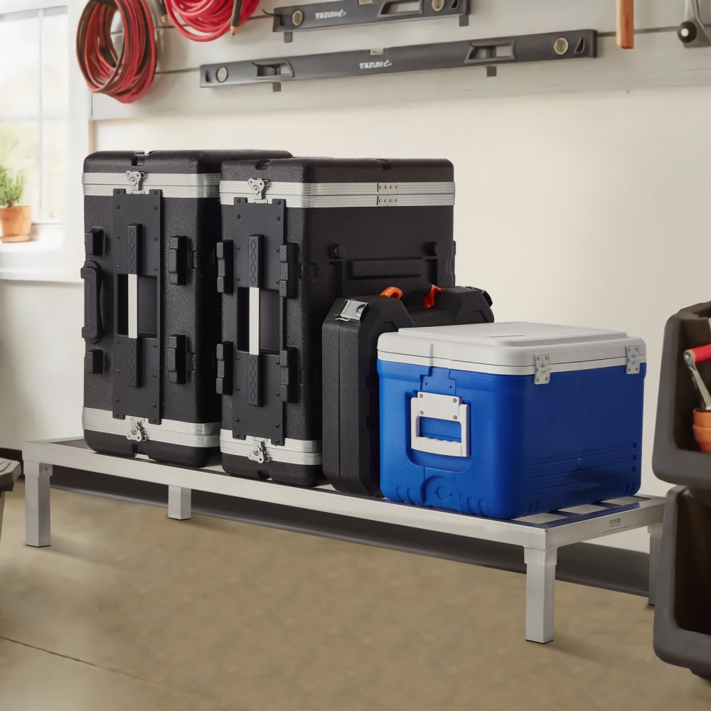 Aluminiowy regał magazynowy, 48 x 20 cali, komercyjna półka podłogowa na żywność, 8 cali nad ziemią, nośność 1800 funtów, w pełni spawany aluminiowy regał magazynowy, do przechowywania w restauracjach, kuchniach, garażach i pojazdach - Sprzęt do magazynowania i obsługi