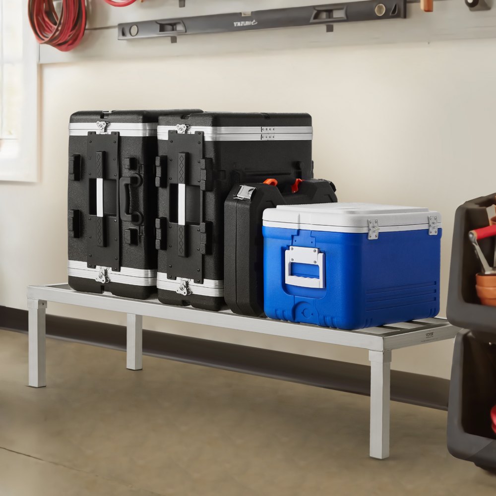 Aluminiowy regał magazynowy, 48 x 20 cali, komercyjny regał podłogowy do przechowywania żywności, 12 cali nad ziemią, nośność 1800 funtów, w pełni spawany aluminiowy regał magazynowy, do przechowywania w restauracjach, kuchniach, garażach i pojazdach - Sprzęt do magazynowania i obsługi | Galaxy Sklep