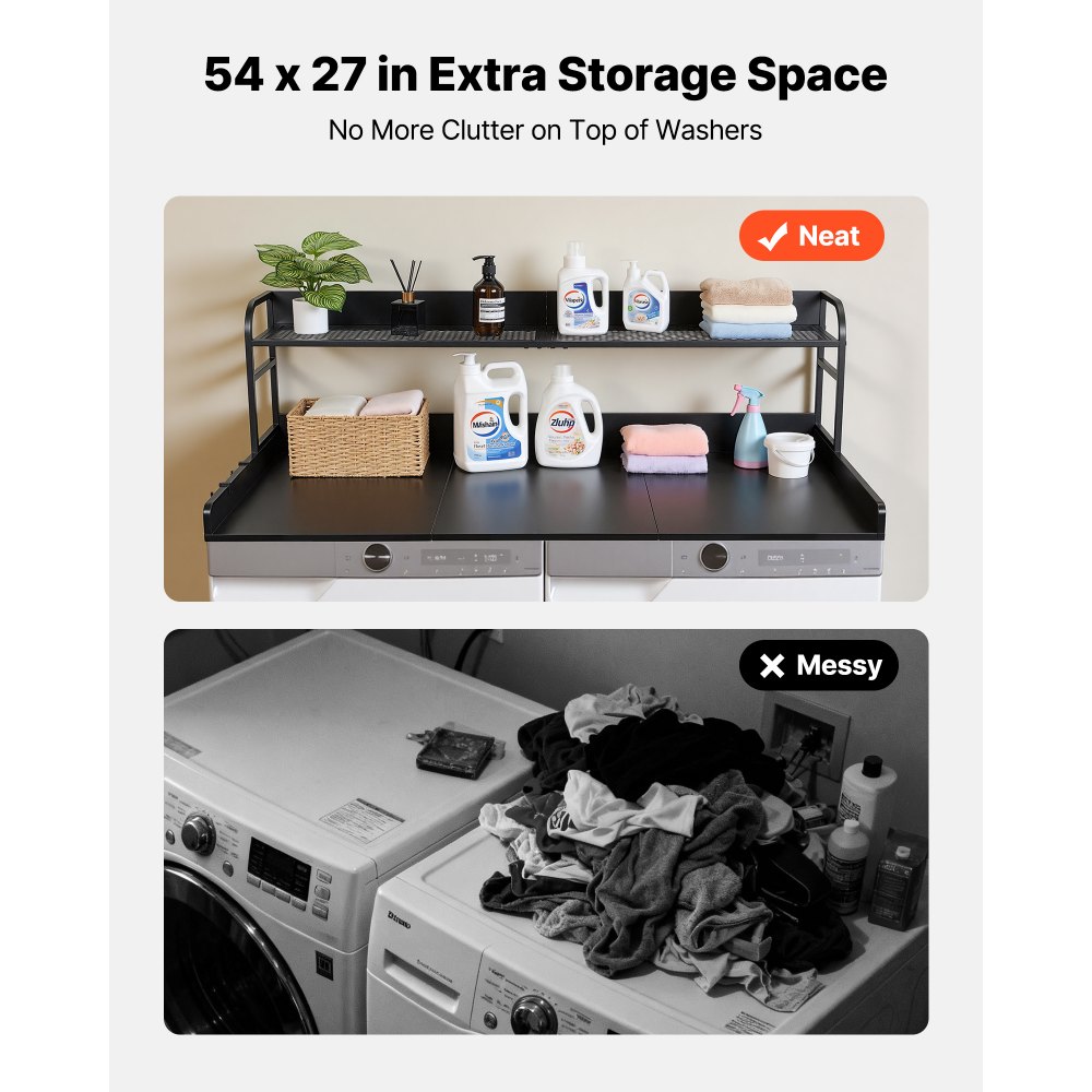 Blat roboczy VEVOR do pralki i suszarki (137 x 69,9 cm) z haczykami i półką, do organizacji i przechowywania w szafie na pościel, spiżarni lub blacie kuchennym, nośność do 113 kg, kolor czarny - Sprzęt do magazynowania i obsługi | Galaxy Sklep