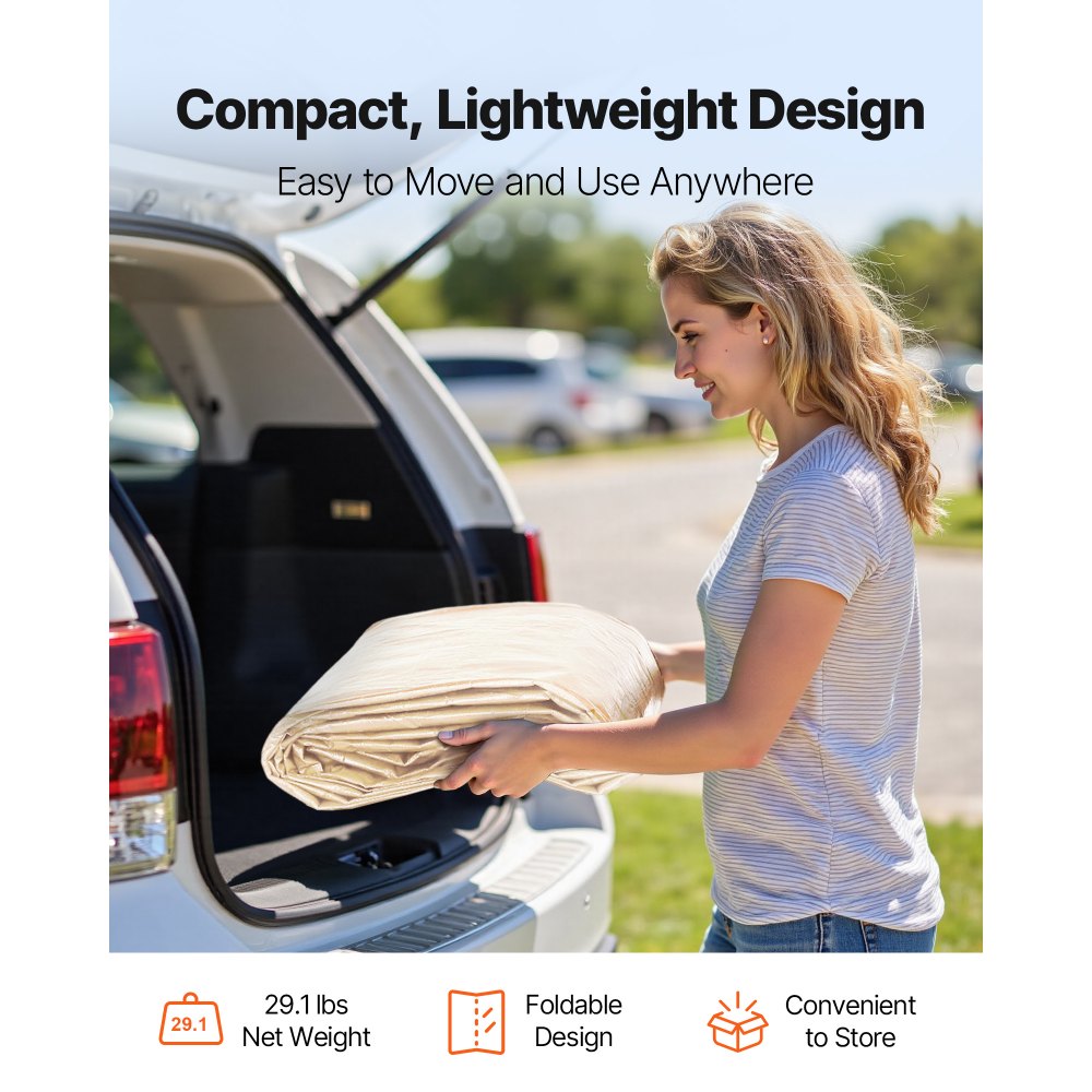 Solidna konstrukcja: Przenośna plandeka garażowa jest wykonana z tkaniny polietylenowej o gramaturze 210 g (ścianki boczne 180 g) i ma splot 16x16. Jest bardziej wytrzymała niż konwencjonalne plandeki. Podwójnie zgrzewane szwy i oczka zapewniają ścisłe i bezpieczne dopasowanie, zapobiegając ryzyku rozdarcia i przeciekania.
