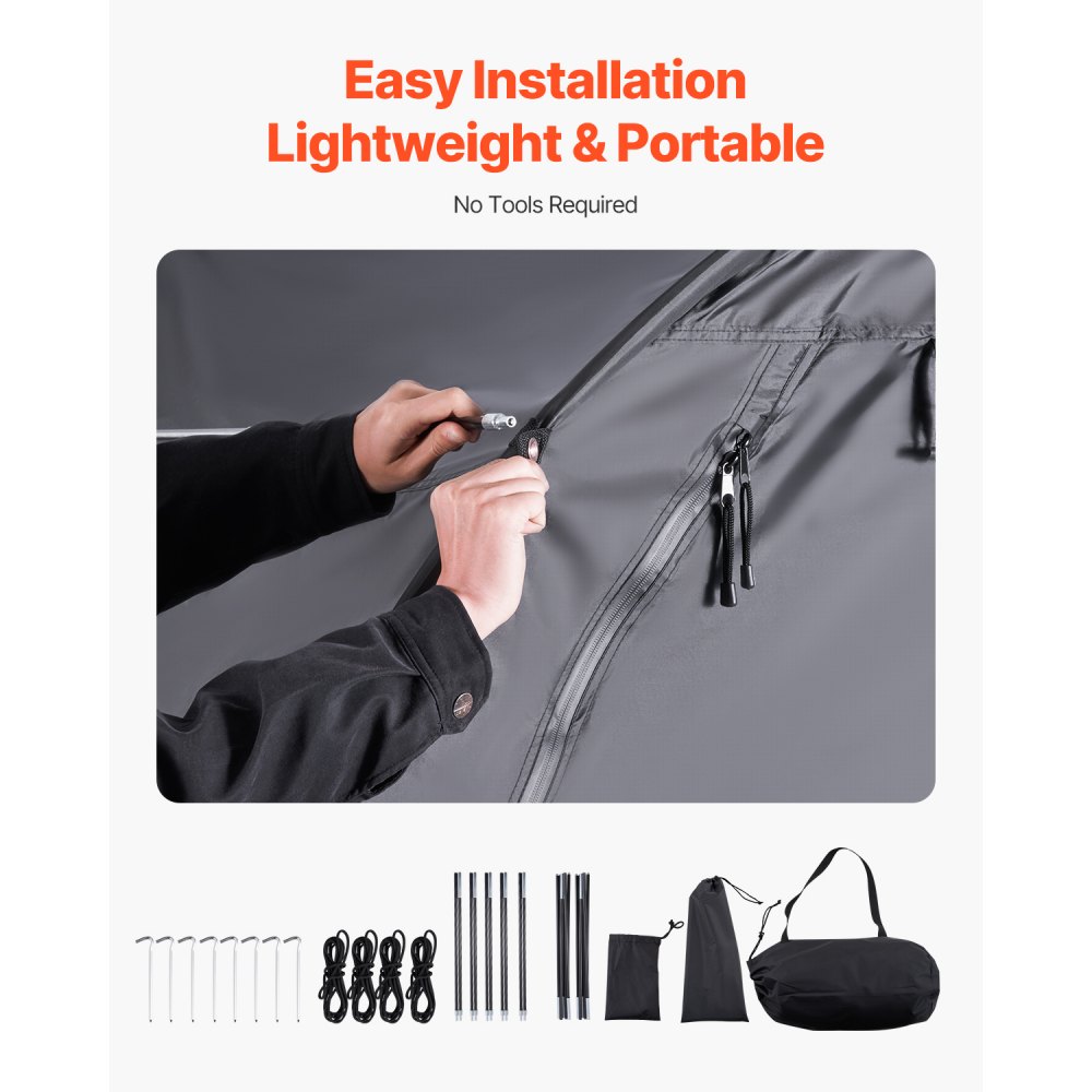 Namiot rowerowy VEVOR, na 1–2 rowery, przestronny garaż na rowery z wentylowanym oknem, wachlarzowaty schowek na rowery z wytrzymałego włókna szklanego i podwójnymi zamkami błyskawicznymi, 1706 x 2011 x 792 mm