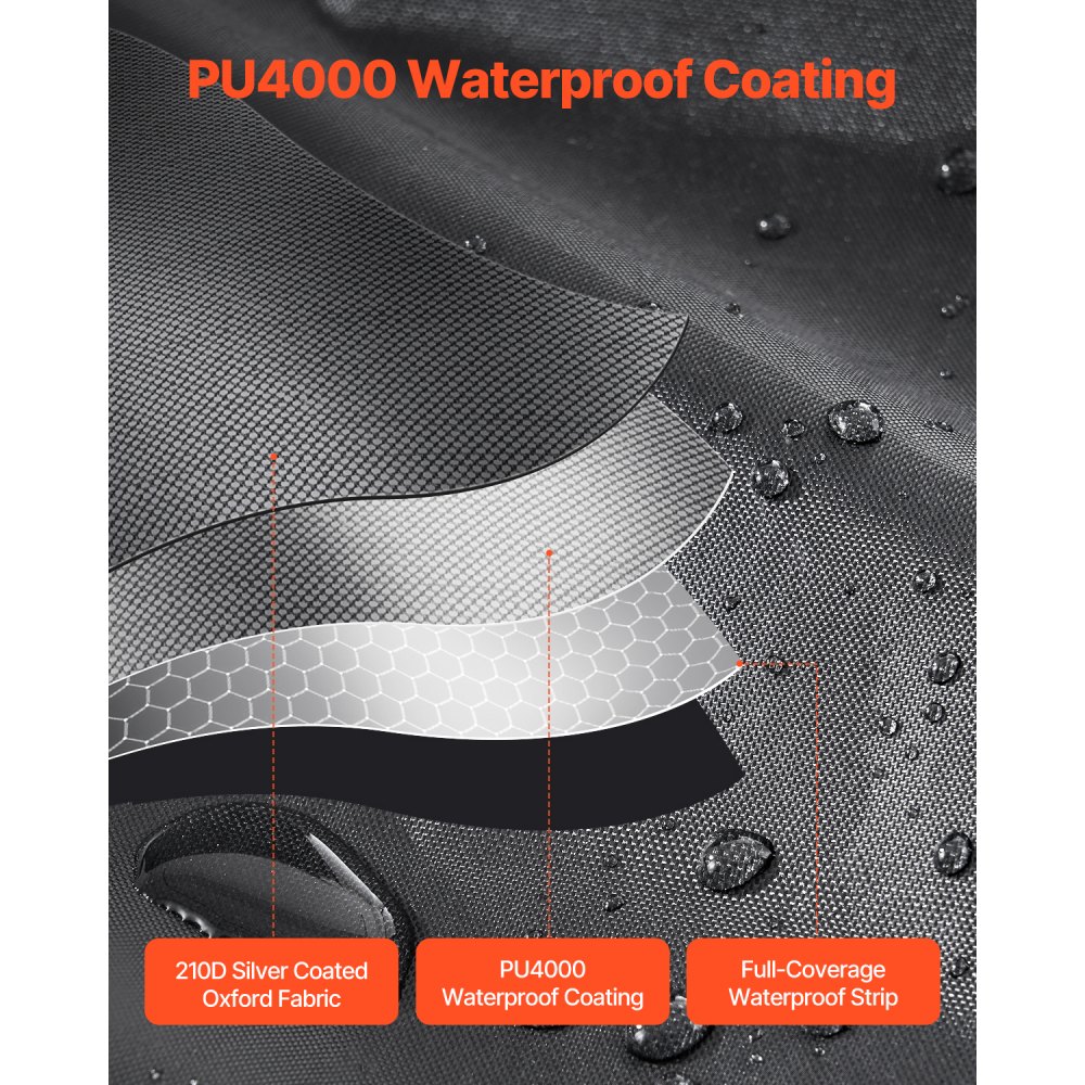 Kompleksowe zabezpieczenie: Nasza wiata rowerowa posiada profesjonalną podwójną powłokę wodoodporną i tkaninę Oxford 210D z powłoką srebrną. Zewnętrzna warstwa tkaniny Oxford 210D powlekanej srebrem w połączeniu z wodoodporną powłoką PU4000, wodoodporną taśmą na całej powierzchni i zakrzywioną konstrukcją zapobiegają gromadzeniu się wody i utrzymują wnętrze suche. Materiał chroniący przed słońcem dodatkowo wydłuża żywotność.