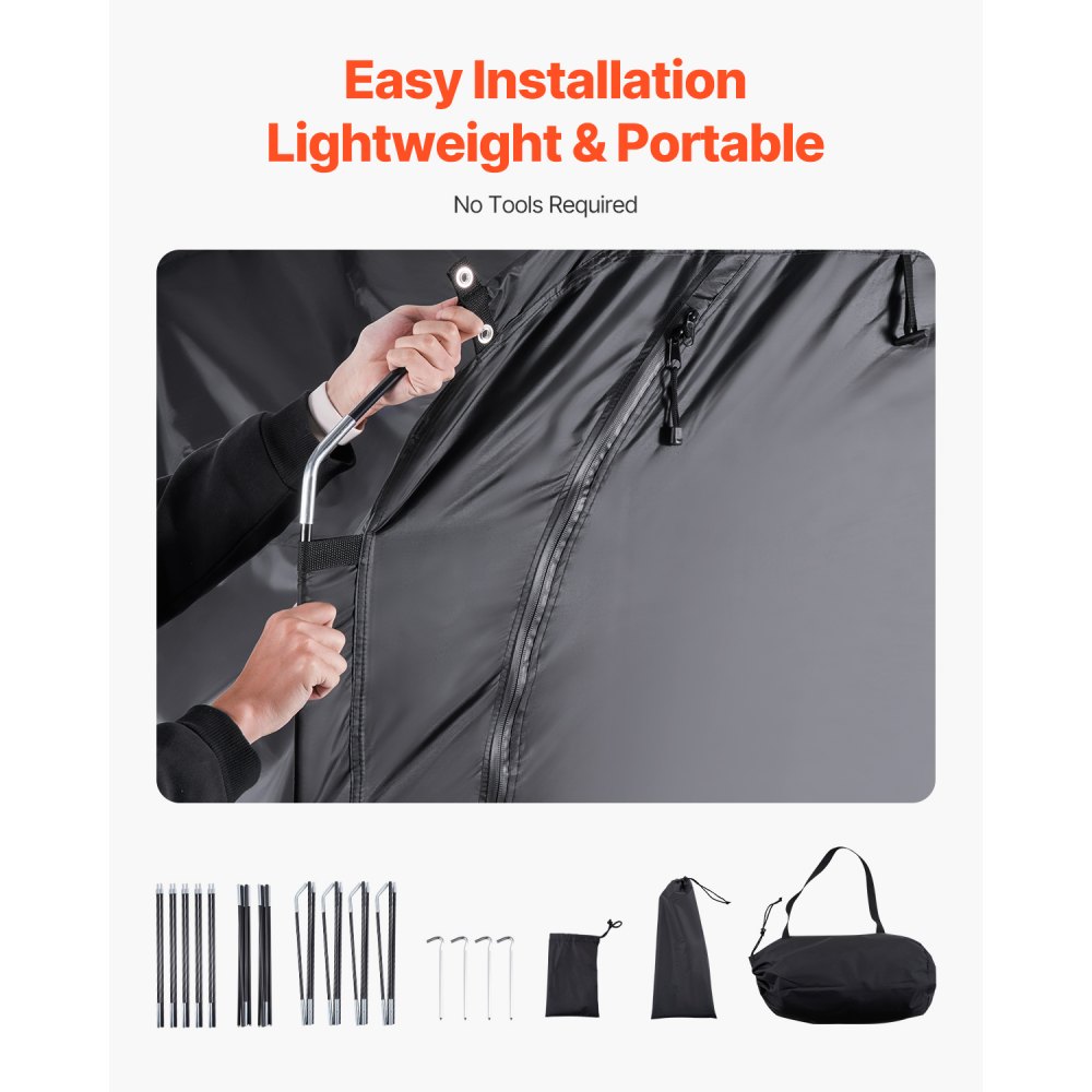 Namiot rowerowy VEVOR, na 4 do 5 rowerów, przestronny garaż na rowery z wentylowanym oknem, łatwy w montażu schowek na rowery z wytrzymałego włókna szklanego i podwójnymi zamkami błyskawicznymi, 226 x 151 x 197 cm
