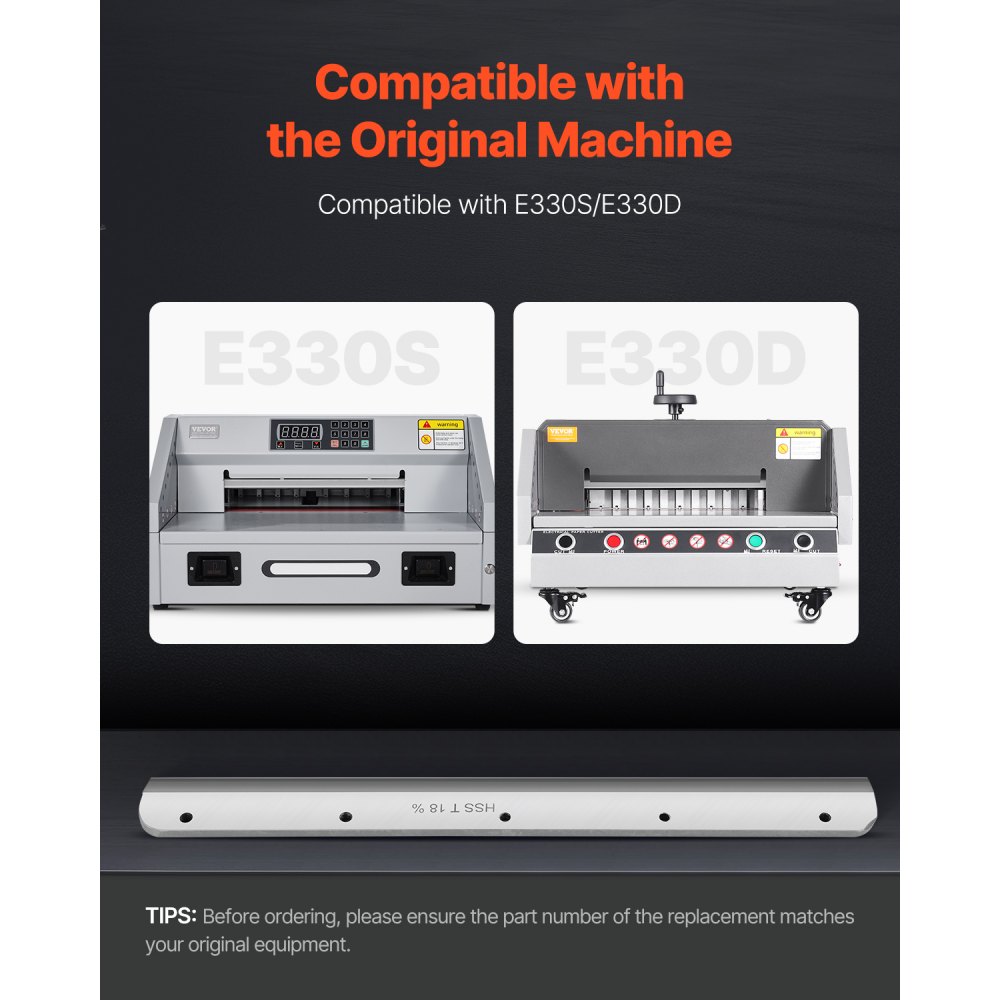Idealne dopasowanie: Ostrza specjalnie zaprojektowane do elektrycznych gilotyn do papieru E330D/E330S pasują idealnie i nie wymagają regulacji po instalacji. (Przed złożeniem zamówienia upewnij się, że numer części jest taki sam, jak numer oryginalnego urządzenia.