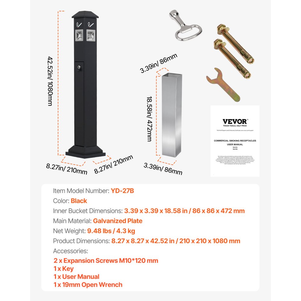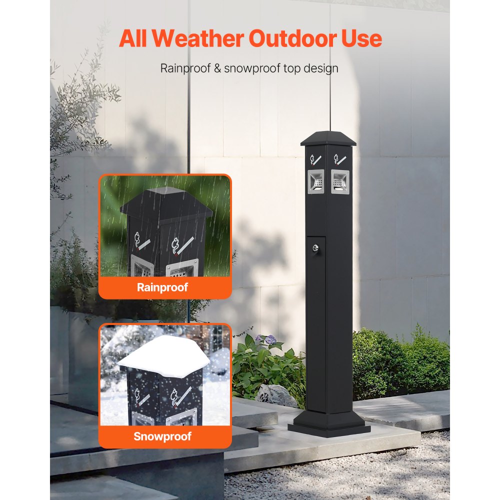 Odporny na warunki atmosferyczne i bezpieczny: Wodoodporny dach utrzymuje wszystko suche i świeże, a wbudowana blokada bezpieczeństwa i chowany uchwyt ułatwiają konserwację i zapewniają łatwą ochronę przed kradzieżą. Ten pojemnik na niedopałki papierosów zapewnia bezpieczeństwo i czystość w Twoim otoczeniu w każdych warunkach pogodowych.