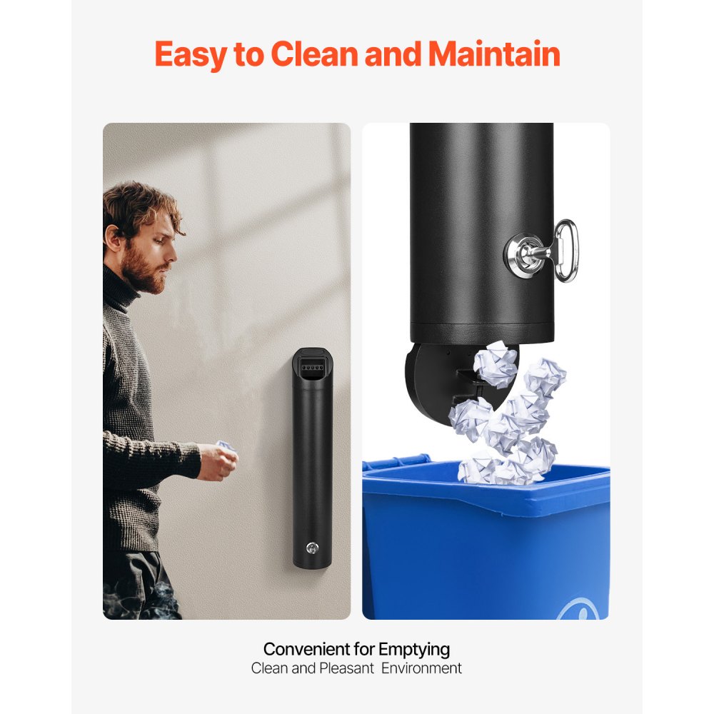 Kompaktowa konstrukcja do montażu na ścianie: Konstrukcja do montażu na ścianie oszczędza miejsce, dzięki czemu idealnie nadaje się do ciasnych przestrzeni. Montaż jest łatwy poprzez wywiercenie otworów w ścianie. To praktyczne i estetyczne rozwiązanie dla Twojego kosza na śmieci.