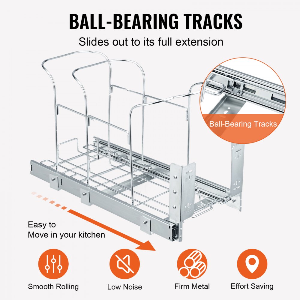 Solidna konstrukcja: Rama tego kosza na śmieci pod szafką wykonana jest z żelaza, dzięki czemu jest on wyjątkowo odporny na rdzę i korozję oraz łatwy do czyszczenia ściereczką. Wykończenie powierzchni zapewnia elegancki wygląd i trwałość. Kosz pomieści do 49,90 kg odpadów bez utraty wydajności, a dzięki pełnemu wysunięciu można go bez problemu wsuwać i wysuwać.