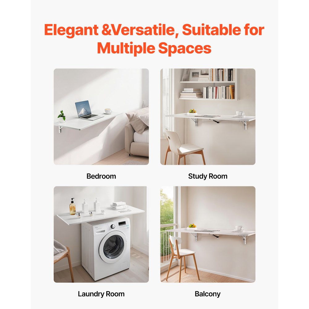 Składany stół montowany na ścianie, 110 x 46 cm, stół składany, biurko wiszące z żelaznym uchwytem, składane biurko do małych przestrzeni, gabinetu, jadalni, pralni, kuchni, baru, biały - Sprzęt do magazynowania i obsługi | Galaxy Sklep