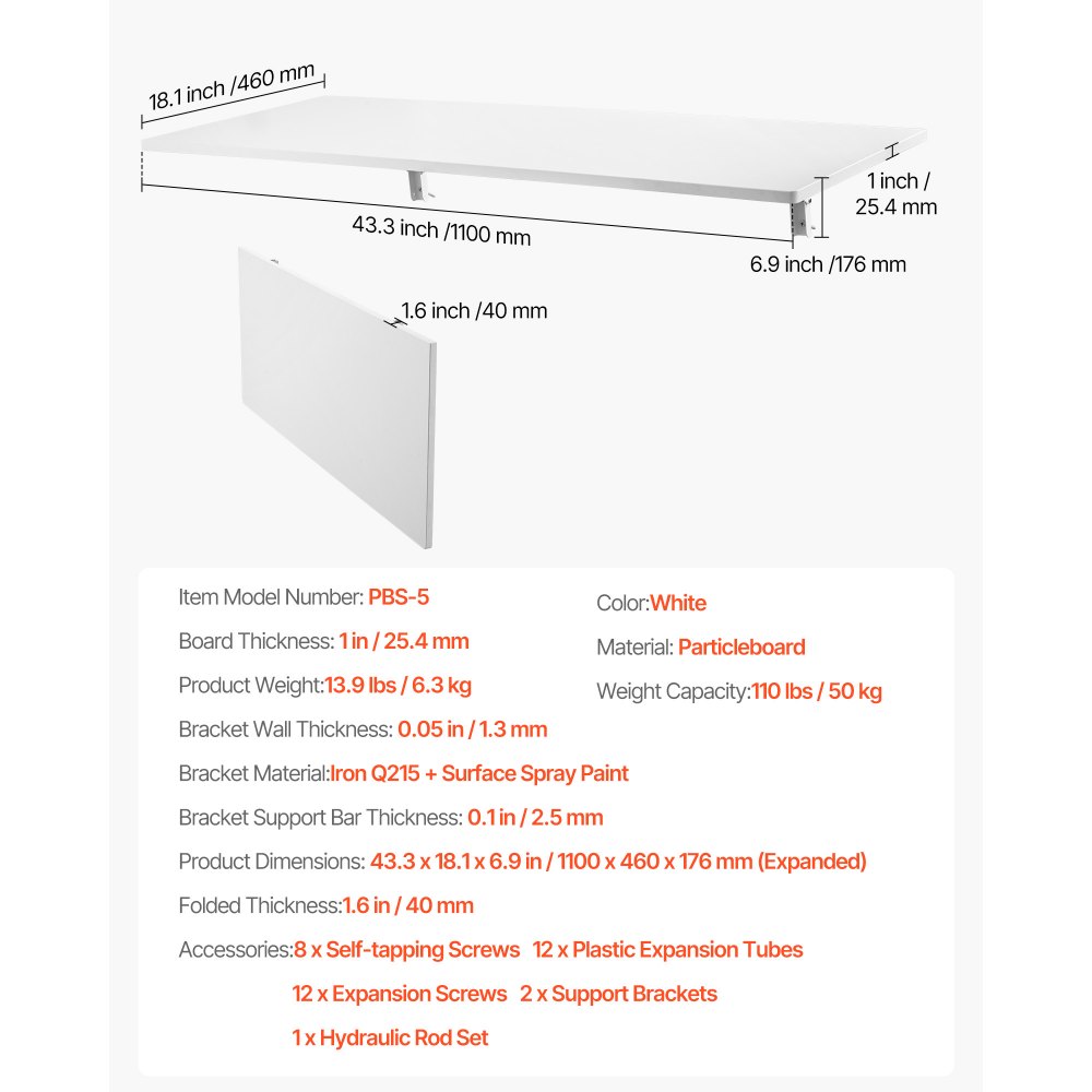 Wysoka nośność 50 kg: Pomimo kompaktowych rozmiarów, to montowane na ścianie biurko może udźwignąć do 50 kg dzięki materiałowi o grubości 2,54 cm. Jest wystarczająco wytrzymałe, aby utrzymać wszystko – od małych i dużych narzędzi, przez laptopy i ciężkie książki, po przedmioty dekoracyjne – zapewniając stabilność.