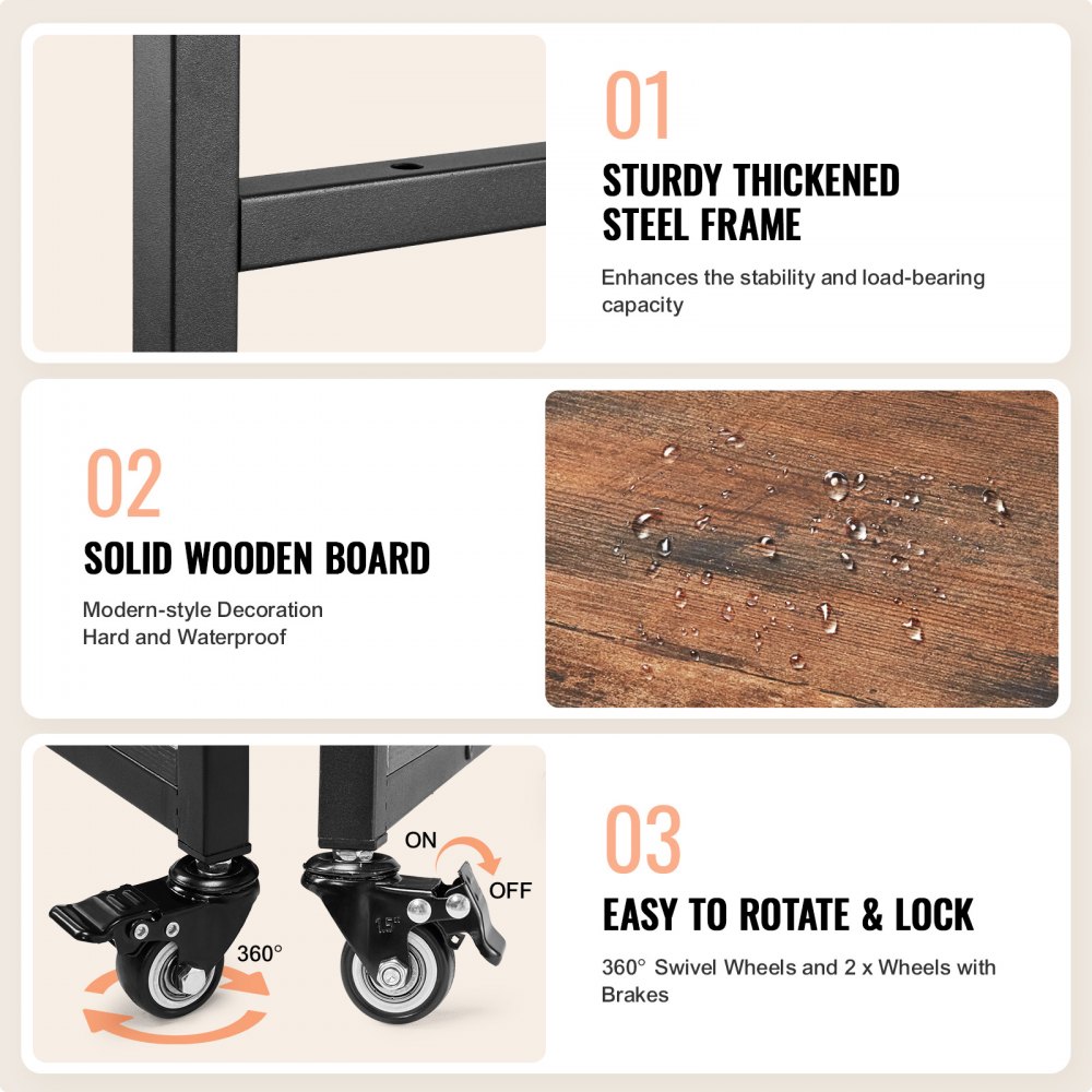 Stojak do prasy termicznej VEVOR, 3-poziomowy, ruchomy stojak do prasy termicznej, składany stojak do maszyny do termotransferu z kółkami i uchwytem na rolkę winylu, metalowy stół warsztatowy do prasy termicznej, brązowy - Sprzęt do magazynowania i obsługi | Galaxy Sklep