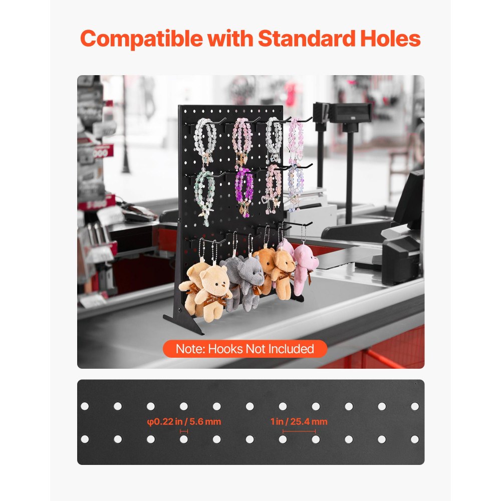 Stojak ekspozycyjny VEVOR Pegboard, 440 x 330 x 114 mm, stojak prezentacyjny, organizer na akcesoria, deska ze stali walcowanej na zimno do sklepów spożywczych, jubilerów, czarny (opakowanie 4 szt.)