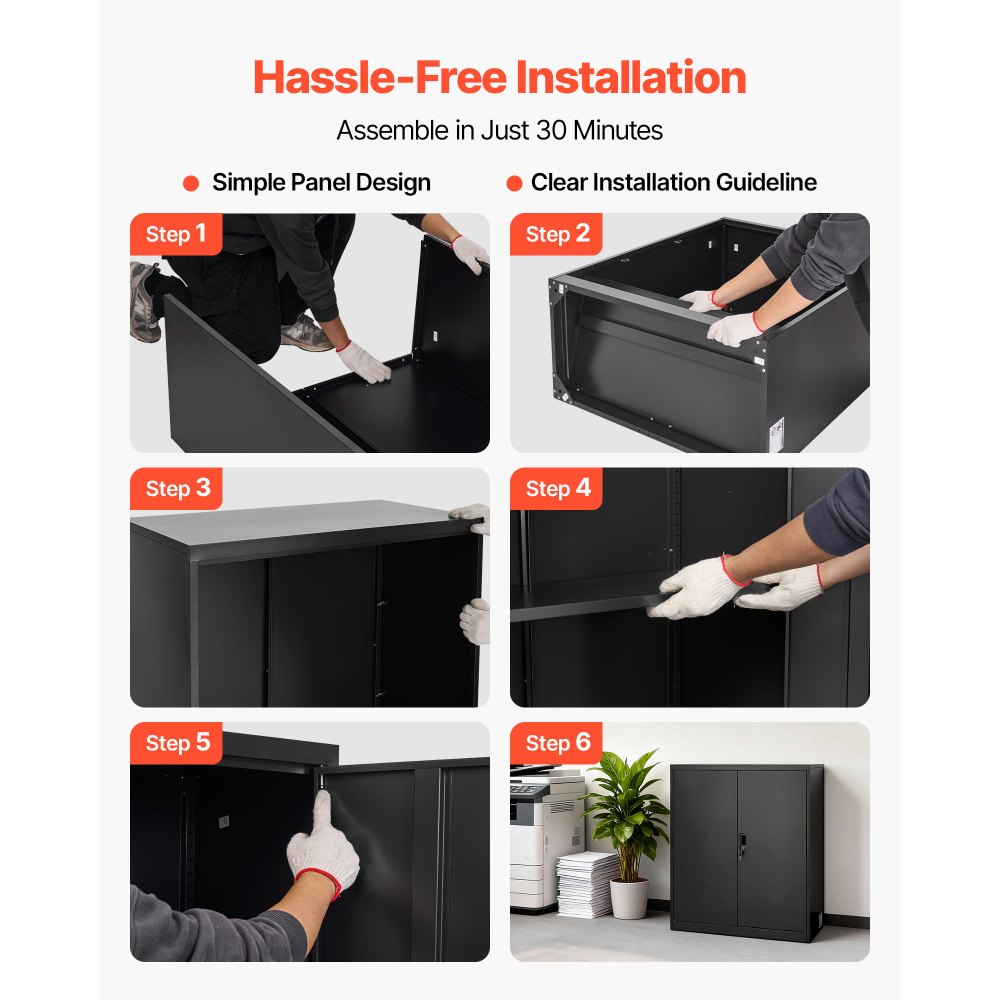 Szafka metalowa VEVOR, 3 poziomy, 106 cm wysokości, szafka garażowa z regulowanymi półkami, 2 magnetycznymi drzwiami i 2 kluczami, odpowiednia do spiżarni, magazynu, piwnicy, czarna - Sprzęt do magazynowania i obsługi | Galaxy Sklep