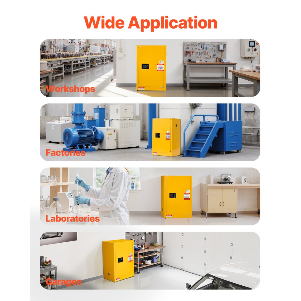 Szafka na gaśnice VEVOR, szafka na gaśnice z możliwością przechowywania materiałów palnych (49,21 l) z regulowaną półką, szafy na gaśnice wykonane ze stali walcowanej na zimno i ocynkowanej, żółta szafka ochronna, szafka na materiały niebezpieczne - Sprzęt do magazynowania i obsługi | Galaxy Sklep