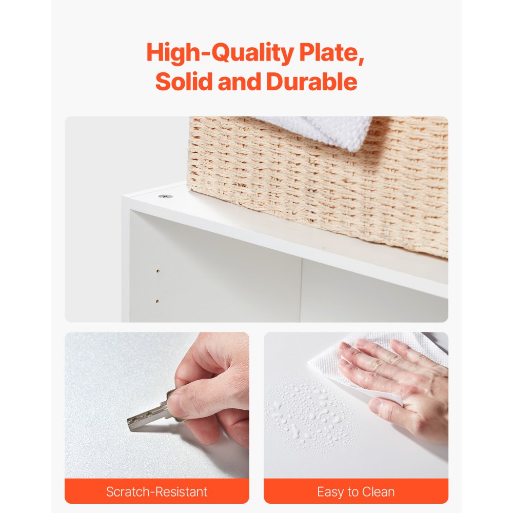 Solidna konstrukcja: Ta ścienna szafka na pranie, wykonana z płyty wiórowej i płyty MDF, wytrzymuje ciężar do 195 funtów (88,5 kg). Materiał jest odporny na zarysowania i wilgoć, a przez to trwały. Montaż na ścianie za pomocą bezpiecznego uchwytu gwarantuje, że szafka pozostanie stabilna i bezpiecznie przymocowana do ściany, a ponadto będzie mogła być używana przez długi czas