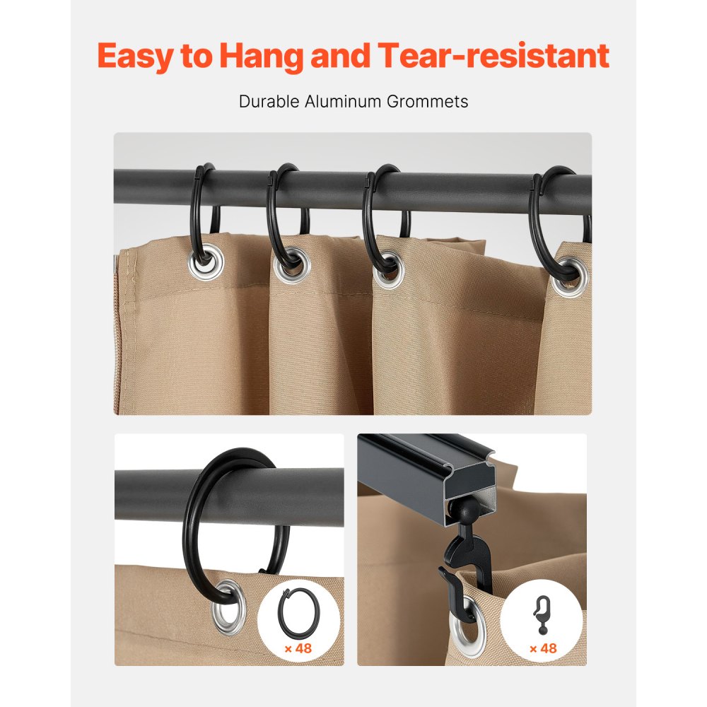 Zasłona VEVOR do altany, 2840x2840x2040 mm, 4-panelowa, boczna, zapewniająca prywatność, z zamkami błyskawicznymi, zasłony przeciwsłoneczne jako zamiennik zadaszenia tarasu, TYLKO zasłony, kolor khaki - Sprzęt do magazynowania i obsługi | Galaxy Sklep