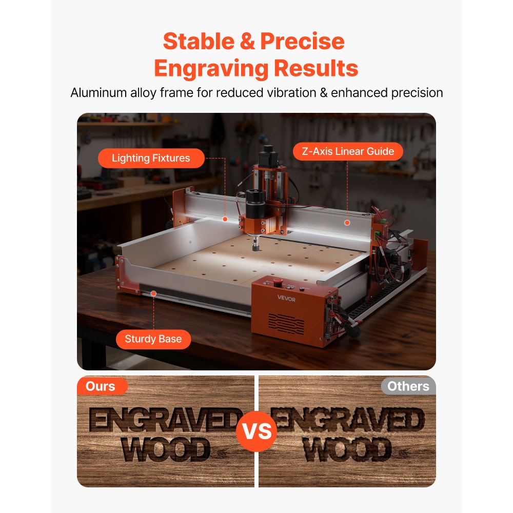 Frezarka CNC VEVOR, wrzeciono 100W, grawerka 3-osiowa, obszar roboczy 400x400x95 mm, frezarka do drewna z prowadnicą liniową, obudowa ze stopu aluminium, do rzeźbienia i cięcia drewna i akrylu - Sprzęt do przygotowywania żywności | Galaxy Sklep